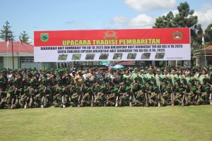 Manokwari Selatan , PB – Komandan Rindam XVIII/Ksr Brigjen TNI Yusuf Sampetoding, S.I.P., memimpin langsung acara Tradisi Korps Raport penerimaan, serah terima jabatan dan pelepasan
