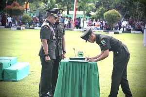 Amanat Kepala Staf Angkatana Darat Maruli Simanjuntak , M.Sc., yang di bacakan Irdam XVIII/Ksr, saya mengucapkan selamat kepada 21.885 mantan siswa yang lulus, dan kini resmi dilantik menjadi prajurit TNI AD berpangkat prajurit dua (Prada). Pendidikan intensif yang dilaksanakan selama 2 bulan dengan segala bentuk pembinaan fisik dan mental, menempel kalian menjadi sosok prajurit TNI AD yang tangguh, profesional serta berkarakter Sapta Marga, Sumpah Prajurit dan Delapan Wajib TNI.