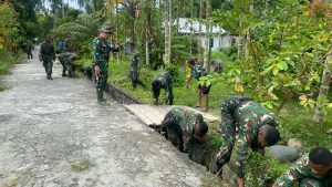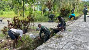 Dipimpin langsung oleh Plh Dandodiklatpur Rindam XVIII/Kasuari Letkol Inf A.R. Ardiansyah, para siswa bersama masyarakat bergotong royong membersihkan parit di sepanjang jalan menuju Pantai Dembek. Dengan penuh semangat, mereka menebas rumput liar, mengangkat sampah, dan membersihkan endapan tanah yang menyumbat saluran air.